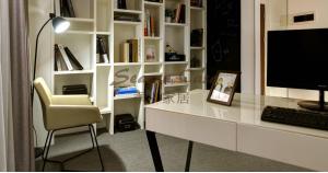 我们的软装设计延续了硬装设计师的设计理念“在趋同化的国际化生活方式中,强调人与人的交流和沟通、开放与接纳,强调生活的舒适与个性”,打破传统高端住宅常用的大量装饰元素堆砌的方式,极力探索更适合现代生活,更加简约时尚的国际化装饰风格;整体空间以木色为主,书房与客厅的墙面采用大片玻璃,使整个空间通透简洁明亮,软装以黑白为基调,更加突出木头的舒适性。