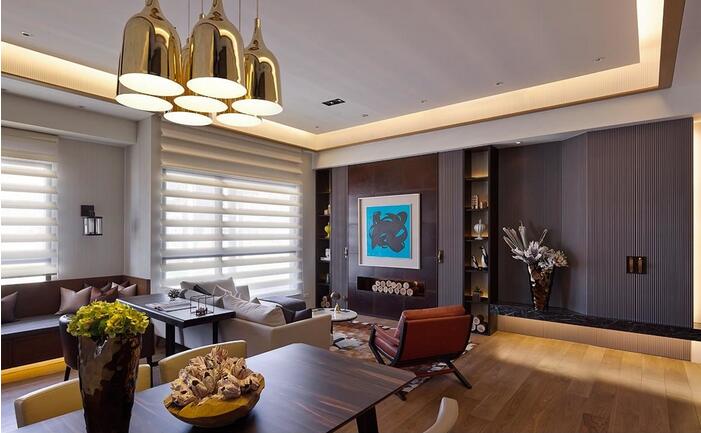 为了让公共区的格局更显大器完整,书房采开放格局,除串联了窗景,同时在书桌后端设计以柜中柜的展示书墙来解决书房收纳,并使书墙成为整个公共区的艺术主墙。转个身,大理石主墙与黄铜金质吊灯的餐区又是另一个空间注目焦点,让人眼睛为之一亮的金致色调,为胡桃木色作基底的公共区注入一抹轻盈感,让整体空间在沉稳与轻快间有了和谐律动,也使居住者在此得到完全纾压的放松生活。