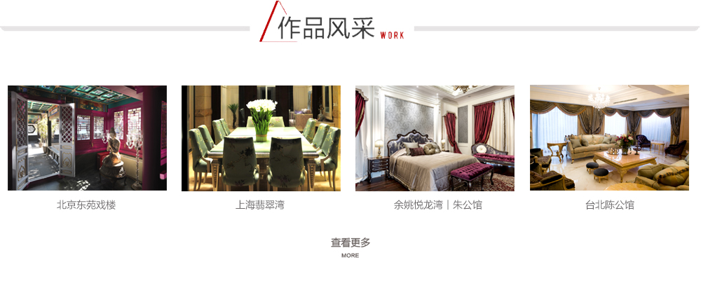 设计范围:北京东苑戏楼、上海翡翠湾、台北陈公馆、余姚悦龙湾、云南1903酒庄等。